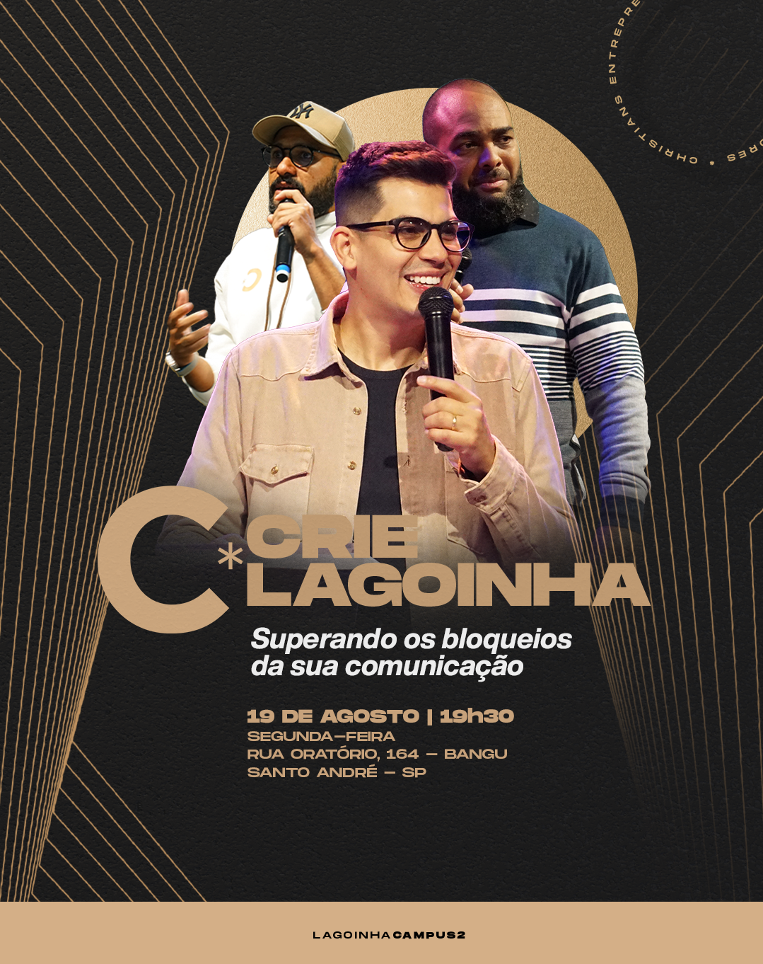 No dia 18 de agosto de 2025, às 19h40, a Lagoinha Alphaville promove mais uma edição do CRIE – Cristãos Empreendedores, ministério da Igreja Batista da Lagoinha voltado para o desenvolvimento de líderes, empresários e visionários que buscam unir fé, valores sólidos e práticas modernas de gestão.