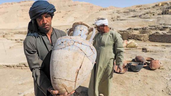 Desaparecida há mais de 3 mil anos, a “Cidade de ouro” revelou diversos esqueletos e artefatos inéditos dos tempos do faraó Amenhotep III, avô de Tutancâmon.
