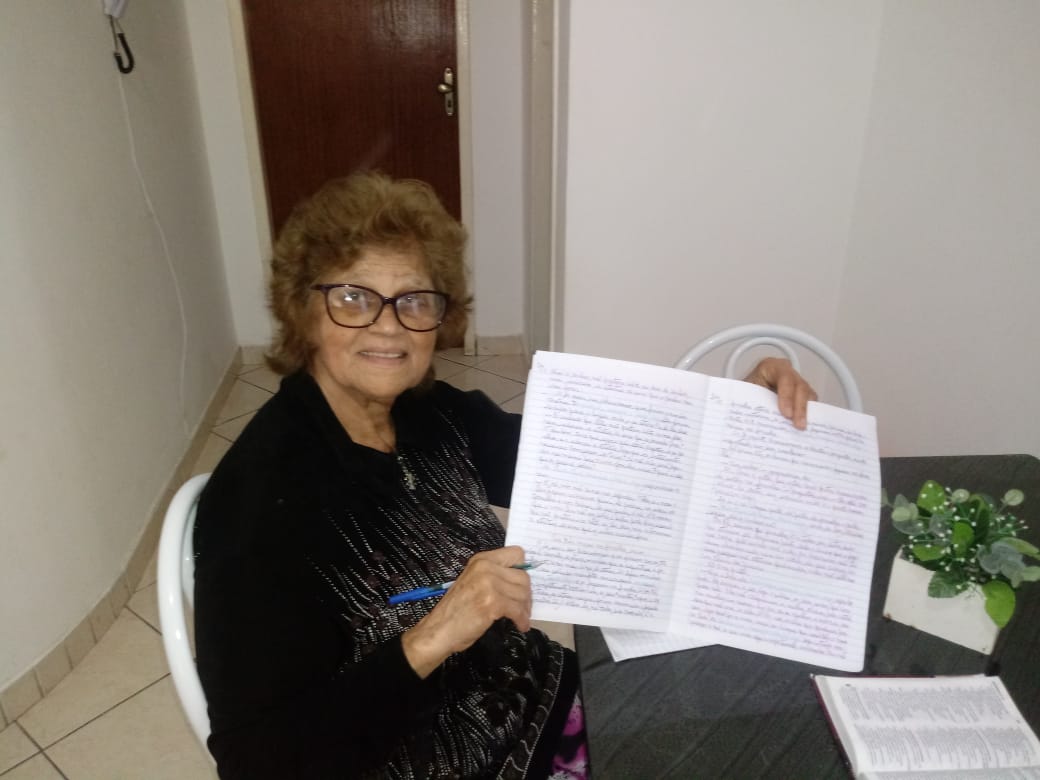 “Foi uma alegria copiar a Bíblia inteira”, disse Petrina Gomes. “Mesmo quando viajava, levava minha Bíblia e um caderno para escrever para não perder tempo. Sempre copiei com oração e com alegria, mas quando cheguei para copiar a seção sobre a vinda de Jesus, chorei muito, fiquei muito emocionada”, compartilhou.