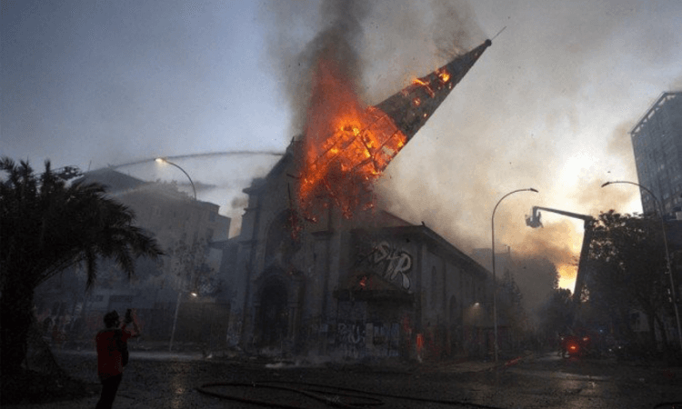 Igrejas são incendiadas durante protestos no Chile