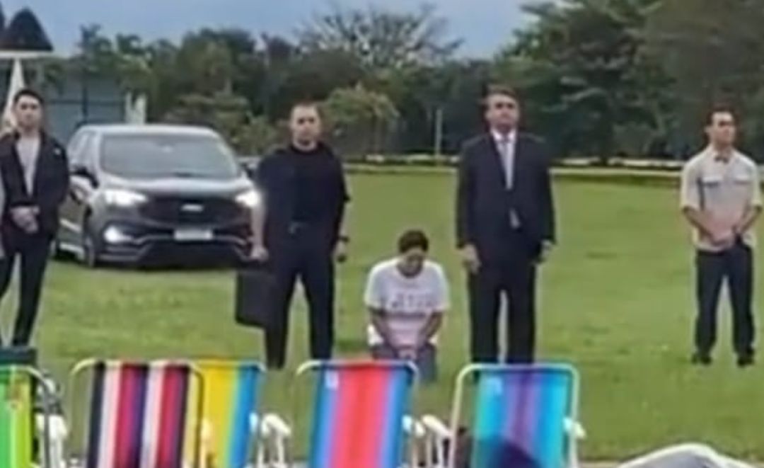 Bolsonaro permaneceu de pé, mas chorou emocionado com as demonstrações de carinho que tem recebido desde que perdeu a eleição, em 30 de outubro.