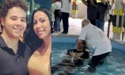 A apresentadora do SBT, Nadja Haddad, publicou no Instagram as imagens onde ela e seu esposo, o prefeito de Cajamar Danilo Joan, se batizam em uma cerimônia realizada pela Igreja Lagoinha Alphaville.