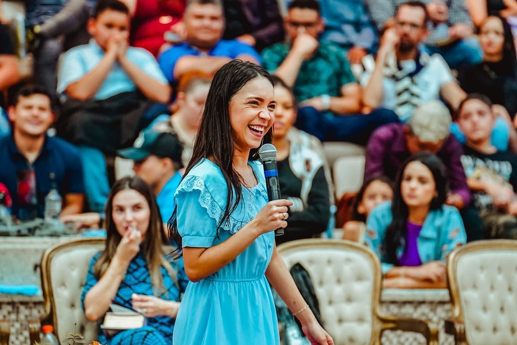 A influenciadora Vitória Souza segue recebendo críticas por parte de teólogos e se tornando memes nas redes sociais pela forma como ministra nas igrejas, usando analogias de objetos e dando palavras motivacionais.