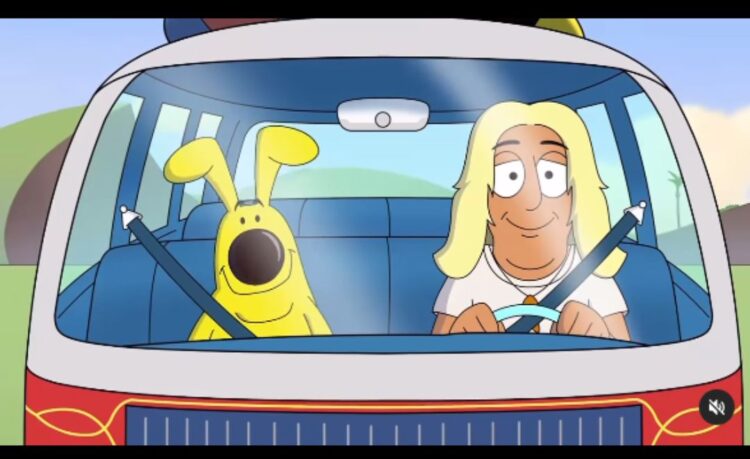 “Estou animado em anunciar que meu personagem de desenho animado, Ben Born Again, e seu amigo, Yellow Dog, já estão animados, e nosso primeiro desenho animado estará disponível em breve!”, escreveu Laurie esta semana.