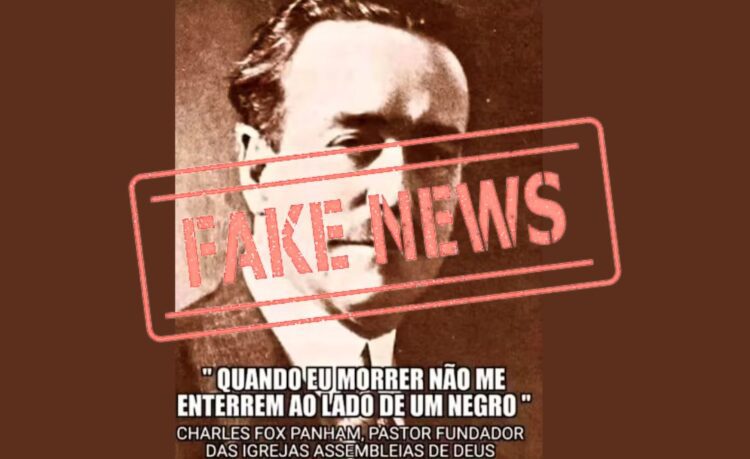 Circula pelas redes sociais uma montagem falsa que atribui a Charles Fox Parham a fundação da Igreja Assembleia de Deus e o tenta ligar a uma frase racista, como se ele se recusasse a ser enterrado ao lado de uma pessoa negra.