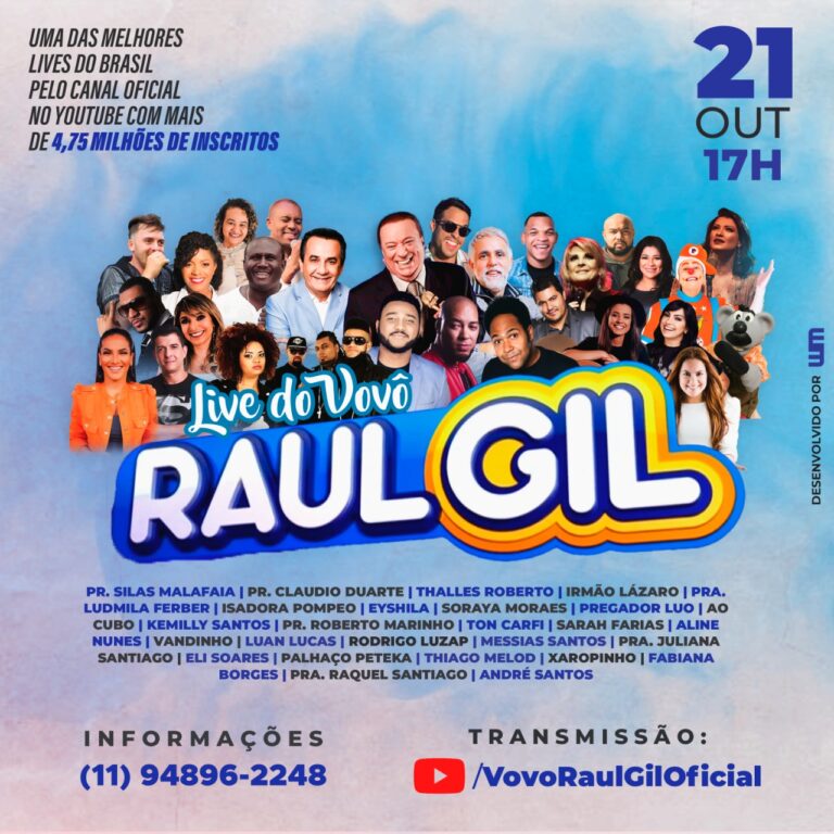 A saber que o apresentador Raul Gil vai promover live gospel no Youtube em 21 de outubro as 17 horas.